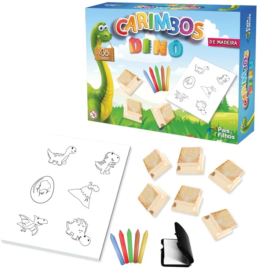 X - JOGO CARIMBOS DINO EM MADEIRA